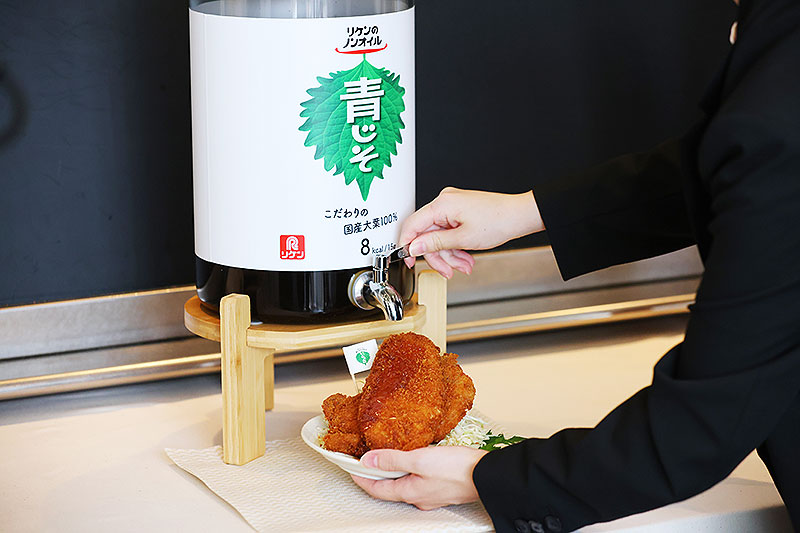 「いいじゃん食堂」店内には、サーバー型の容器に入った『リケンのノンオイル 青じそ』が!