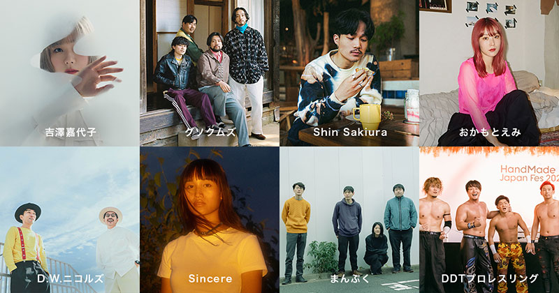 出演アーティストは、おかもとえみ、グソクムズ、Shin Sakiura、Sincere、D.W.ニコルズ、まんぷく、吉澤嘉代子(五十音順)。