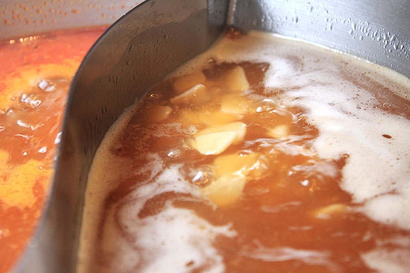 ギネス世界記録で「世界一辛い唐辛子」として登録されたブートジョロキアが入った「鬼辛ペースト」を、鍋に投下!