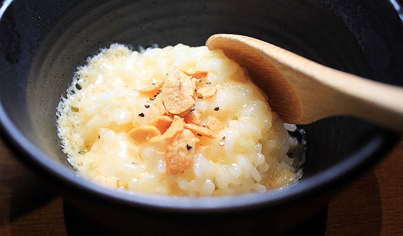 濃厚にんにくスープでリゾットは、黄金