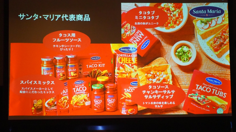 7月に都内で行われたメディア向けの日本初上陸パーティーでは、サンタ・マリアのミニタコタプやサルサディップなどが振る舞われた。