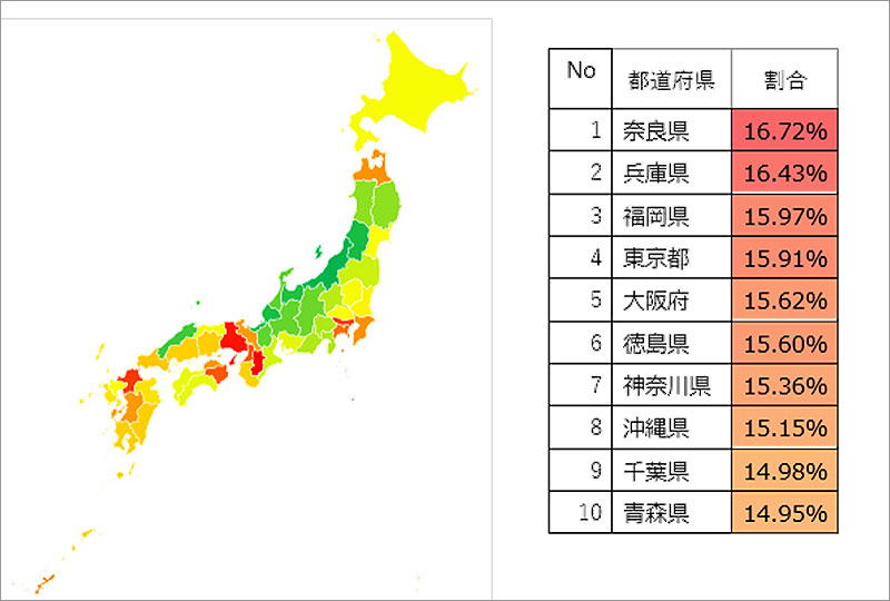 首都圏・関西・九州北部など大都市を抱えるエリアで高い傾向がうかがえる。ただし抽出ロジックは同社定義で、「さらに検討を進める」という。