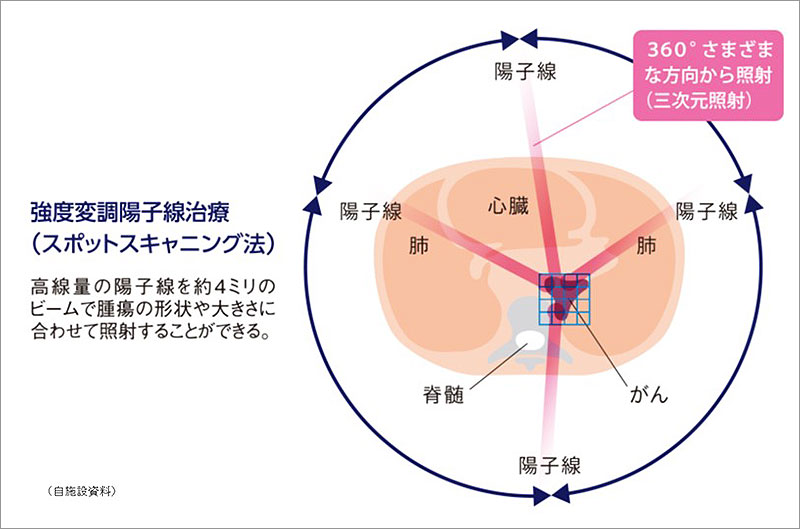 「放射線療法の一種である陽子線治療は、正常組織への影響を最小限におさえながら、がん病巣に最大のエネルギーを当てることができる。