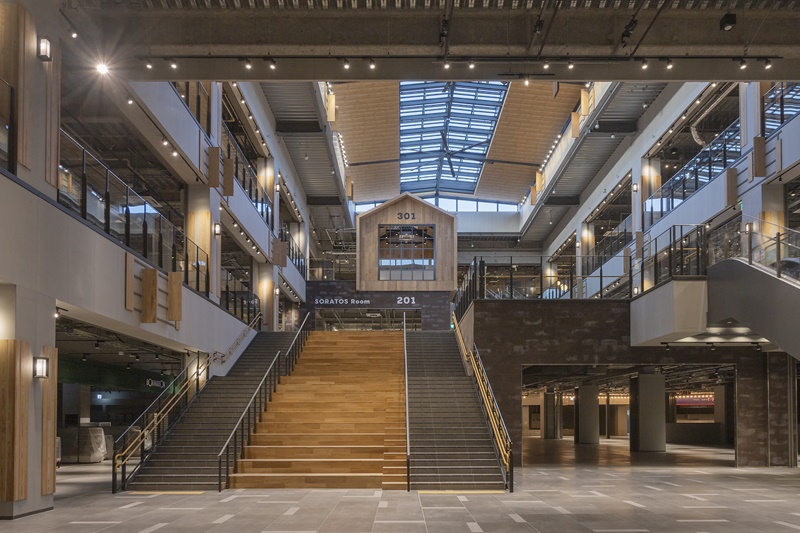 1階には食に関係するイベントスペースもある。生産者がレシピを紹介したり、仲間との協業や情報交換等で人々が集い楽しい時間を共有できる「Live Kitchen SORATOS」だ。厨房や調理器具を備えているだけでなく、調理の様子やレシピを投影できるモニターを備えたシェアキッチンとなっており、地域交流拠点としての役割を担う。