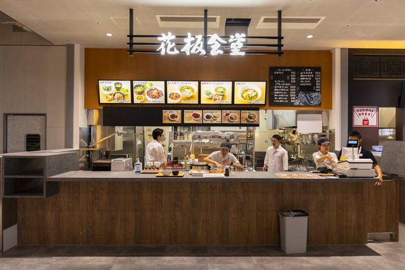 フードコートも充実しており、1階同様のグルメスポットとしても使える。出店するのは全9店舗・約700席。肉好きにはお馴染みの「マロリーポークステーキ」などのほか、関東初出展の「鶏山劇場」や横浜の人気店「花板食堂」など、魅力的な店舗を揃える。