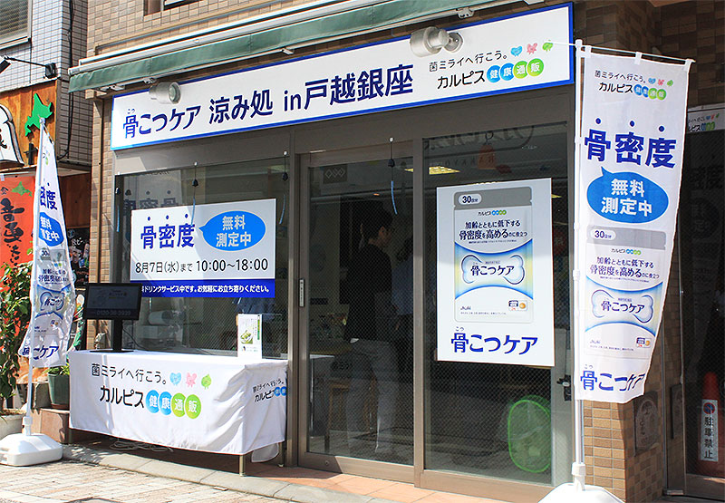ここ「骨こつケア 涼み処 in 戸越銀座」(8/1~8/7 @東京 戸越銀座商店街)は、無料で骨密度測定を体験でき、骨の健康や骨密度への意識を高められる場。