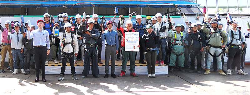 「過酷な現場で建設作業中の工事現場 技能者に、サーモス大容量水筒(ボトル・ジャグ)で冷たい水分を届けたい。熱中症対策のひとつとして貢献したい」という想いから、魔法びんグローバル企業 サーモス(東京都港区)がアクション。