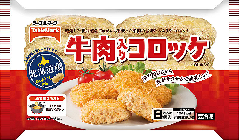 厳選した北海道じゃがいもを使った牛肉の旨味たっぷりのコロッケ(牛肉配合割合3.2%)。