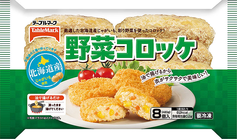 厳選した北海道じゃがいも、彩り豊かな野菜(コーン、玉ねぎ、にんじん)を配合。