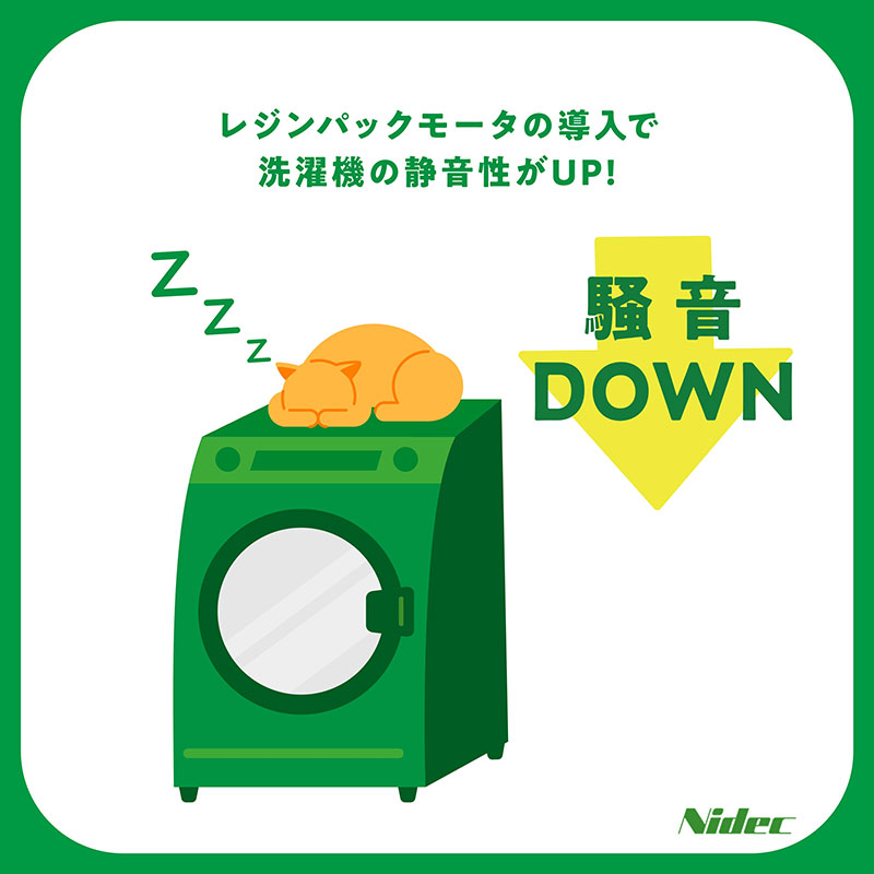ニデックは、音の静かな家電製品の実現に大きく寄与。レジンパックモータを世界で初めて実用化したのもニデック。
