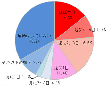 この調査結果で、週に1回以上の日常的な運動をしていると回答した人が51.7%と過半数に。