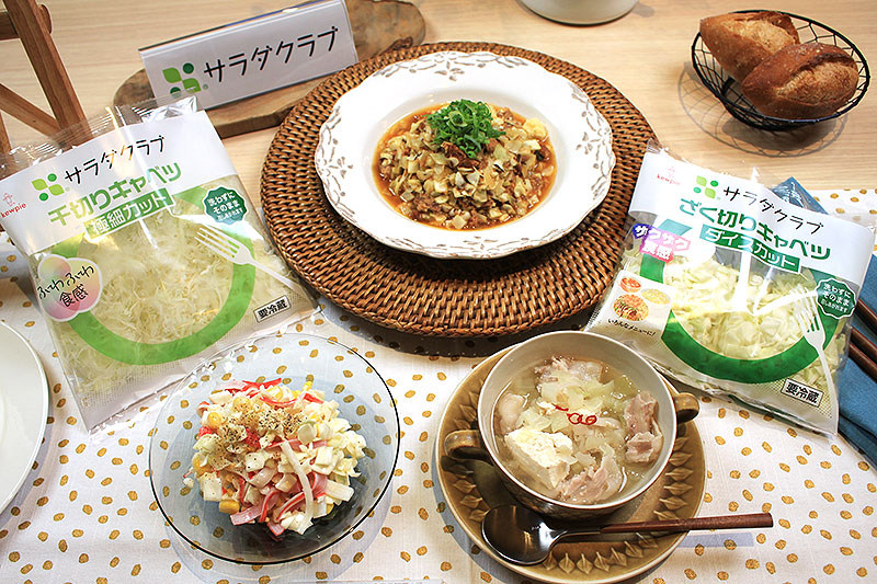 ―――サラダクラブの「千切りキャベツ」は消費期限が加工日に加え5日と鮮度が長持ちすることから、もっと便利に野菜を食べられるように、冷蔵庫にストックしてさまざまな料理に使えることを提案している↓↓↓