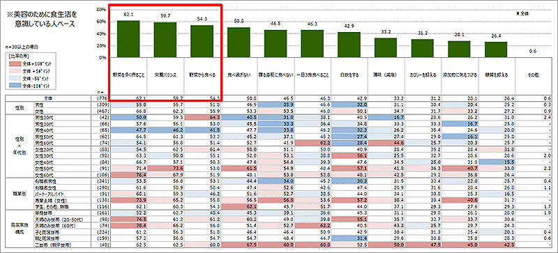 過半数の人が、美容のために野菜の摂取量や食べる順番を意識していることがわかった。