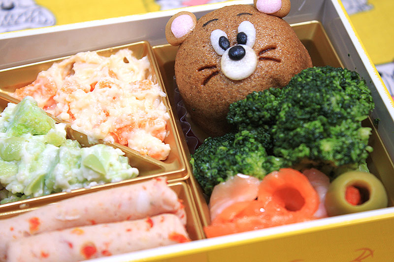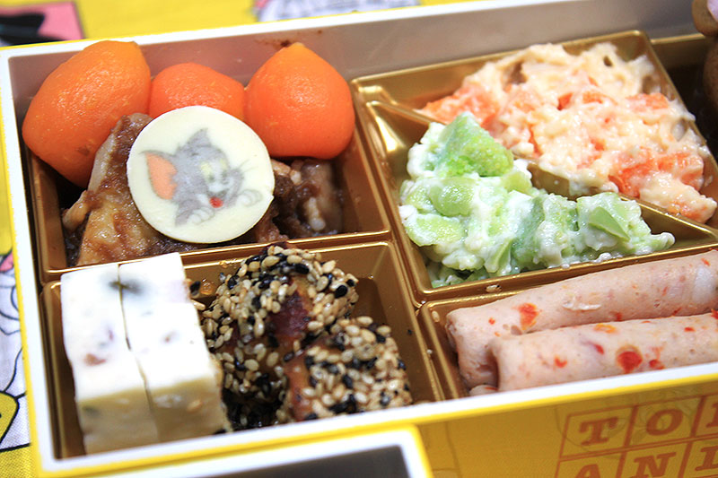 ◆NEW! 鶏肉の赤ワイン味噌風味(チーズのせ)―――鶏肉をコクのあるみそ風味の赤ワインソースで和え。トムの表情が可愛いチーズがポイント。