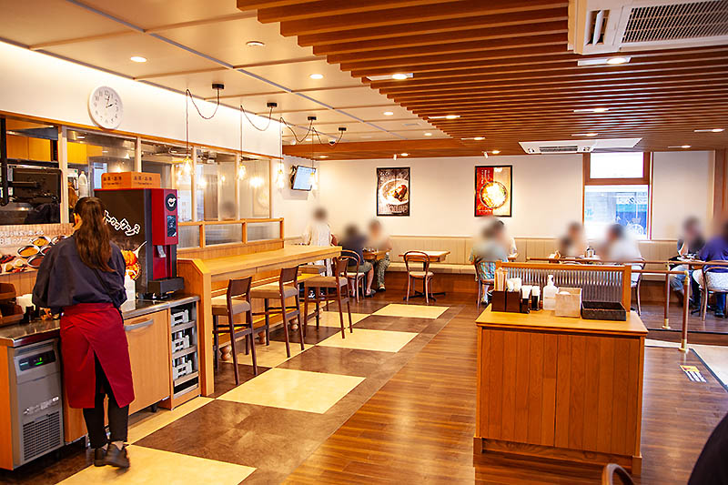 注文は食券制となっており、店内入口のタッチパネルからメニューを選び、券を受け取る。番号の呼び出しがあれば受け取りに行く。
