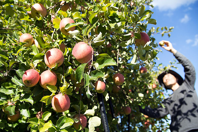 りんご がたわわになる傾斜面を、その先に飯縄山や黒姫山の美しい山容をみながらたどり着いた地は、長野県飯綱町の加工用トマト圃場(ほじょう)。