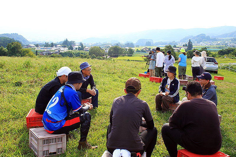 飯綱トマト部会の部会長や、JAながの担当者、長野興農担当者など、加⼯⽤トマト生産と加⼯に関係する生産者にそれぞれの立場から、加⼯⽤トマト生産の現状や今後の展望などをヒアリング。