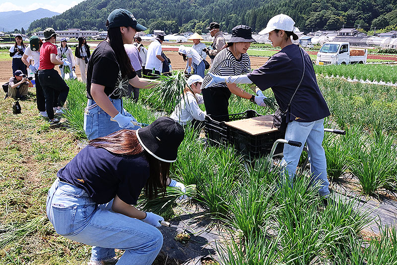 学生は実際の収穫作業を体験し、国産の加⼯⽤原料を生産することのリアルな実態を体感。