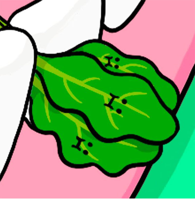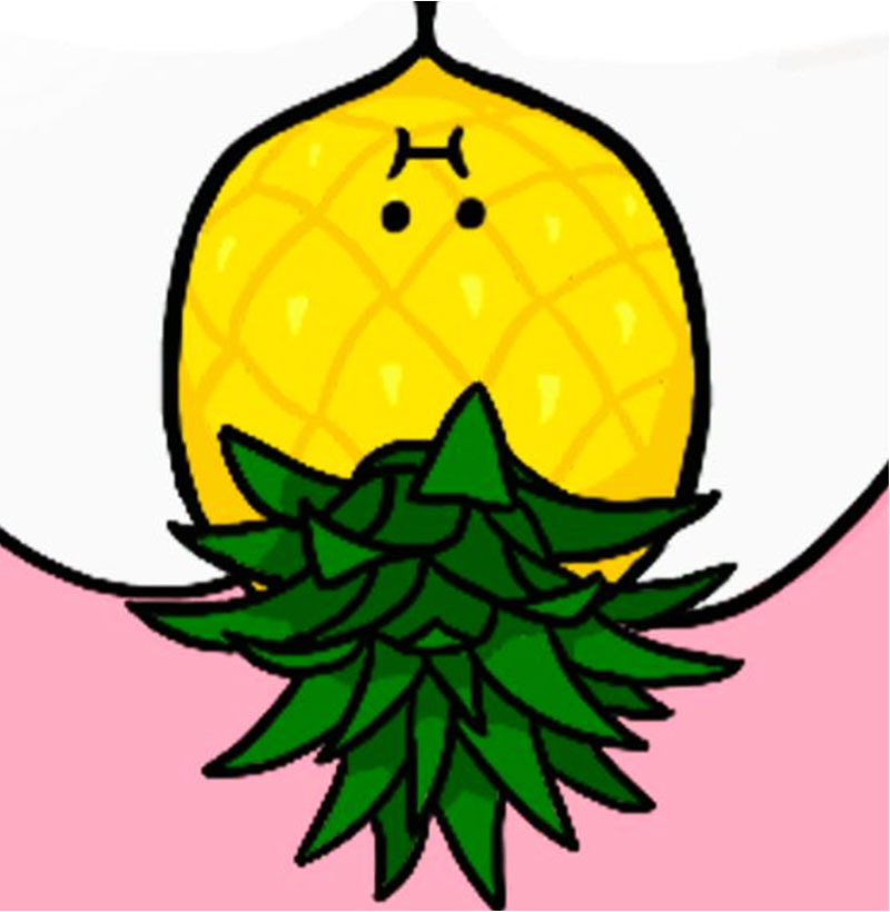 意外にもその繊維質が歯にしっかりつまる「パイナップル」は、南国育ちの楽天家ゆえに、油断して前歯につまる。歯に衣着せぬ発言が、タマに傷。