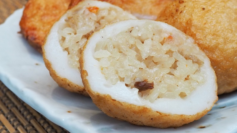 沖縄の郷土料理「ジューシー」(炊き込みご飯)をさつま揚げに包んだユニークな一品。一般的な炊き込みご飯よりコクと甘味があり、さつま揚げとの相性も抜群だ。お値段は380円。