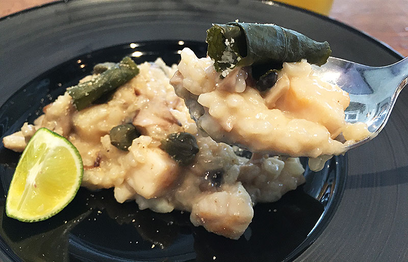 阿里山烏龍茶とホタテ、きのこのリゾット