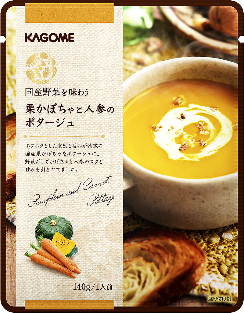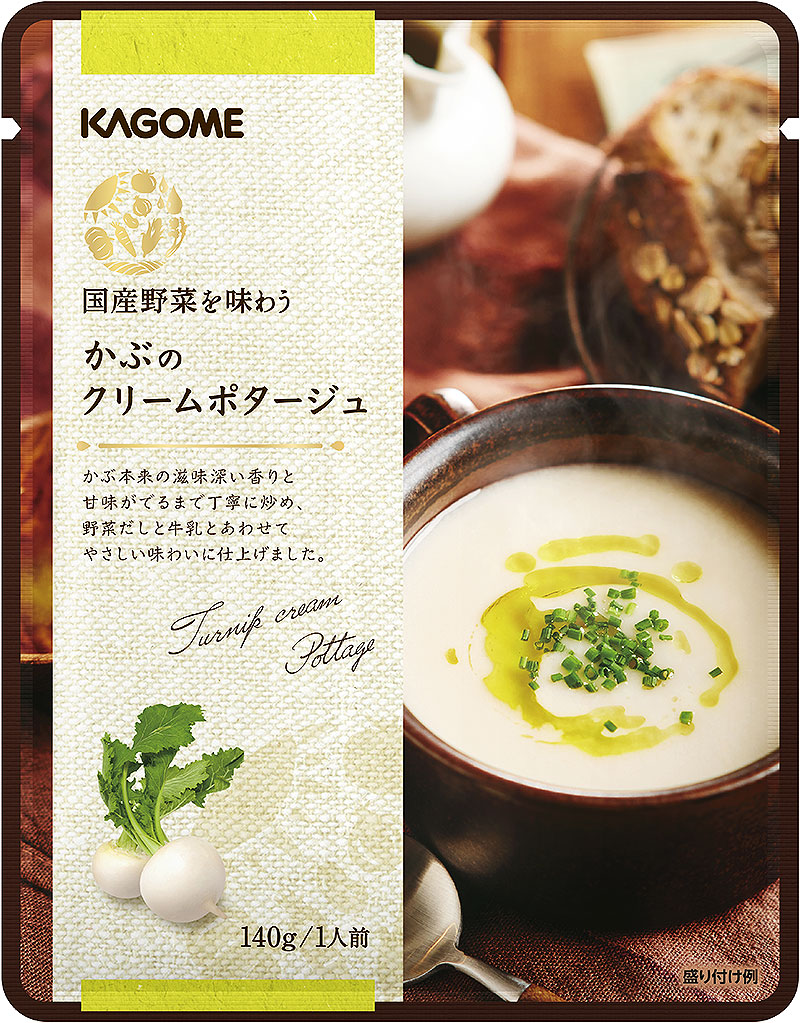 カゴメ健康直送便「国産野菜を味わう冬のポタージュ」は、寒い季節に心まで温まる定番の2品と「トマト」と「かぶ」のクリームポタージュ。