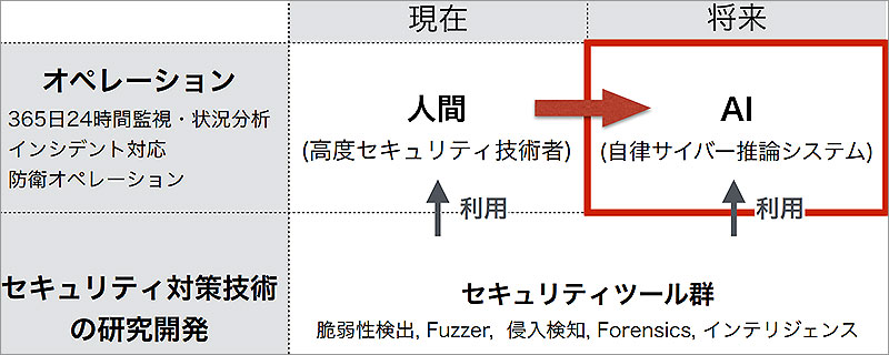 今後、高度な専門技能が要求されるサイバー攻撃対応においても、AI が人間の能力を超えた性能を発揮することが期待できる。