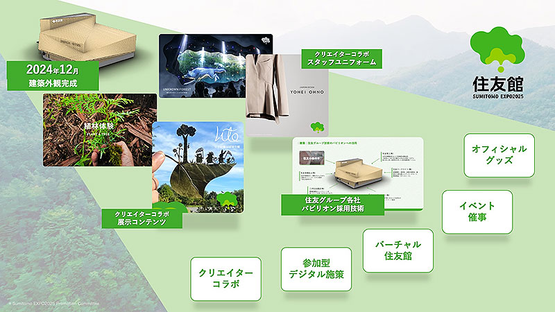 UNKNOWN FOREST の展示体験コンテンツのコラボをはじめ、住友館アテンダントスタッフユニフォームなど、2025年4月13日の開幕に向けて順次発表をしていくというから、これも要チェック。