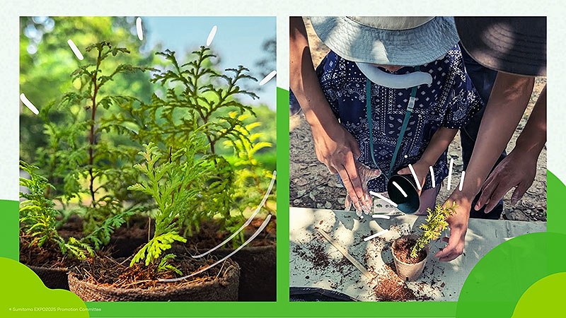 2025年よりも先の未来に向けて、苗木や土に触れる体験型プログラム「植林体験」では、万博期間中に、苗木を約1万本用意。