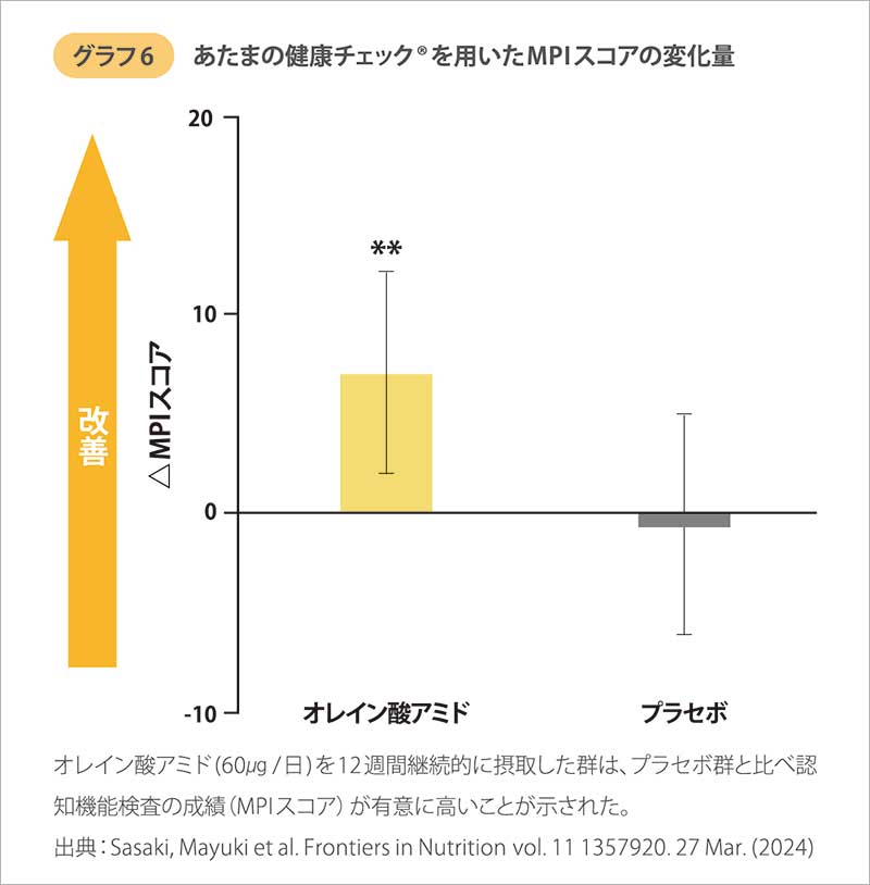 今回、こうした先行研究を踏まえ、オレイン酸アミドと認知機能との関連性をヒト試験で確認し、カマンベールチーズに含まれるオレイン酸アミドの摂取が、認知機能を維持させる可能性が示唆されることを明らかにした。