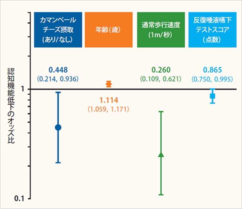 また今回の研究で、年齢が若いこと、歩行速度が速いこと、嚥下機能が維持できていることも、認知機能低下の起こりにくさと関連していることが確認できた。