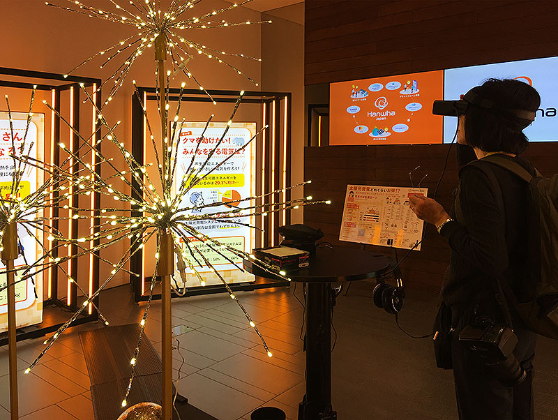 ハンファジャパンポップアップイベント「ヒカリのおうち」会場内にはハンファジャパンのスタッフが常駐し、製品説明のほか、オリジナルで開発した電力費用シミュレーターも体感できる。