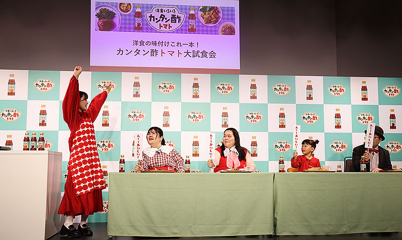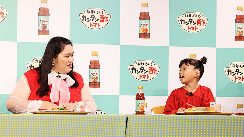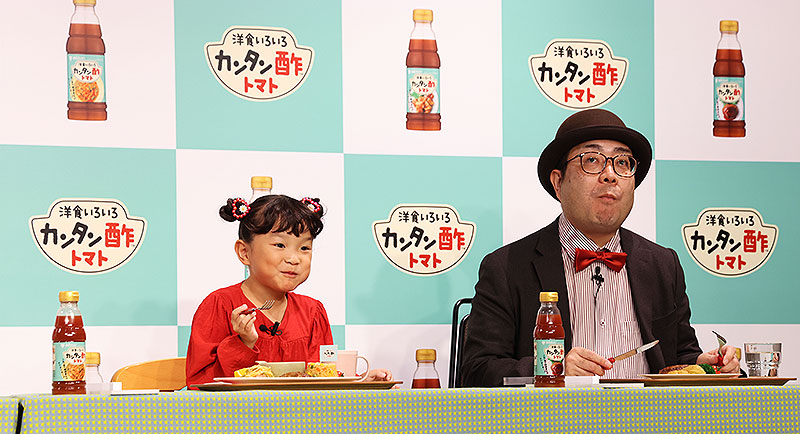 このミツカン「カンタン酢」シリーズのなかでも、初の洋食特化型新商品「カンタン酢トマト」には、ぼる塾 きりやはるか あんり 田辺智加、村方乃々佳、日本ハンバーグ協会 バーグマン田形 理事長もびっくり&納得!