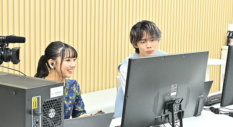 ポールトゥウィン 秋葉原センター を訪れた矢野妃菜喜(ニコラ/テスラ)と、川島零士(アマノ)は、実際に使われている業務用PCと向き合い、とあるゲームソフトのデバッグを体験。