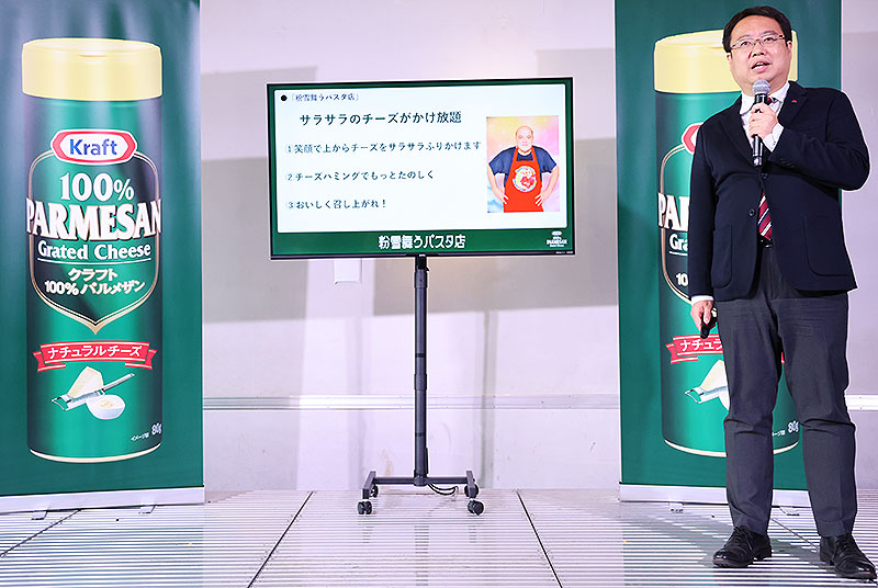 「物価高騰等の背景から、飲食店で粉チーズが有料化されている店が多くなっています。そんななか、サラサラなパルメザンチーズを思う存分お愉しみいただきたいとの想いからオープンしました」(森永乳業 チーズ事業マーケティング部 伏見隆之さん)