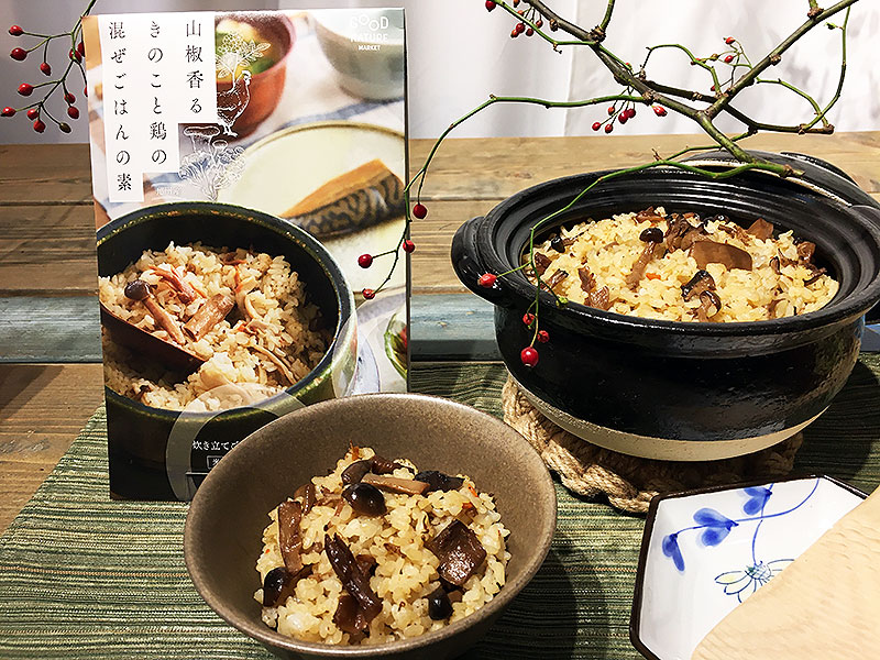 炊いたごはんに混ぜるだけで手軽に食べられるレトルトタイプの「混ぜごはんの素」シリーズに、素材の味を引き出すために、無添加、手作業にこだわった新商品「山椒香るきのこと鶏の混ぜごはんの素」(864円)が登場。