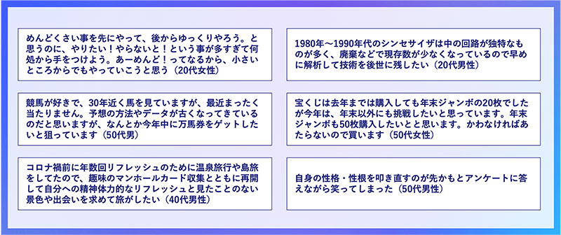 さらに、やり残しに対するモチベーションが上がる要因として「お金ができたら」という項目が挙げられ、経済的な余裕がやり残しに対する意欲を高める要素であることが分かった。