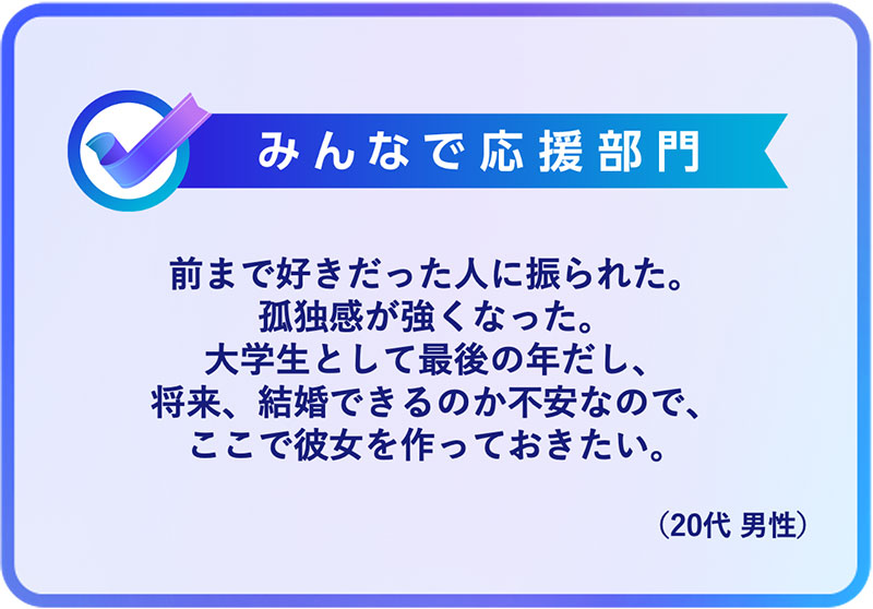 結婚で一番大事なのはフェロモンの相性であるので、会ってみなければわからない。データに惑わされずに、対面で気に入った人がいたら、是非アタックしてほしい。そういう勇気のある人を応援したいです」(特別選定委員 池田清彦)