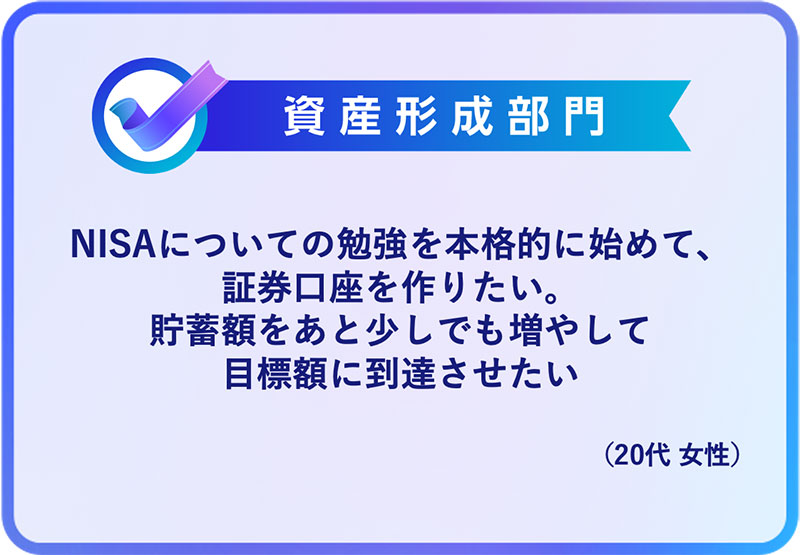大賞に選ばれた方も20代でNISAの勉強を本格的に始め、アクションを起こすことを目標としています。