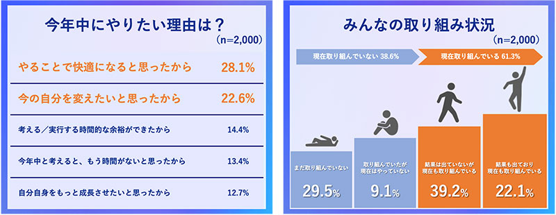 今年中にやりたい理由としては、「やることで快適になると思う」、「今の自分を変えたい」といった前向きな理由が上位に。