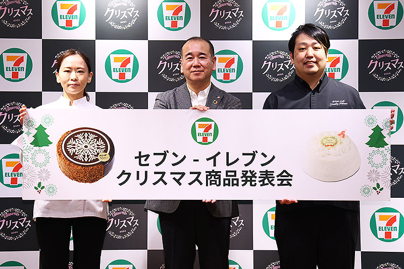 セブン-イレブン クリスマス商品発表会では、セブン-イレブン・ジャパン商品本部 宮賢二さんや、柴田勇作シェフ、高橋萌シェフらが登壇。