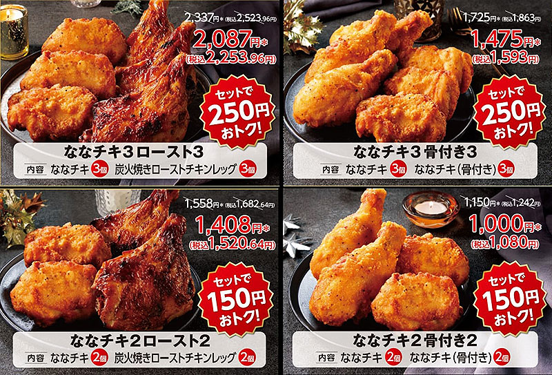 ななチキは、骨付きと骨なしの組み合わせなど各種セットがあるから、家族みんなで選ぶのも楽しい♪♪