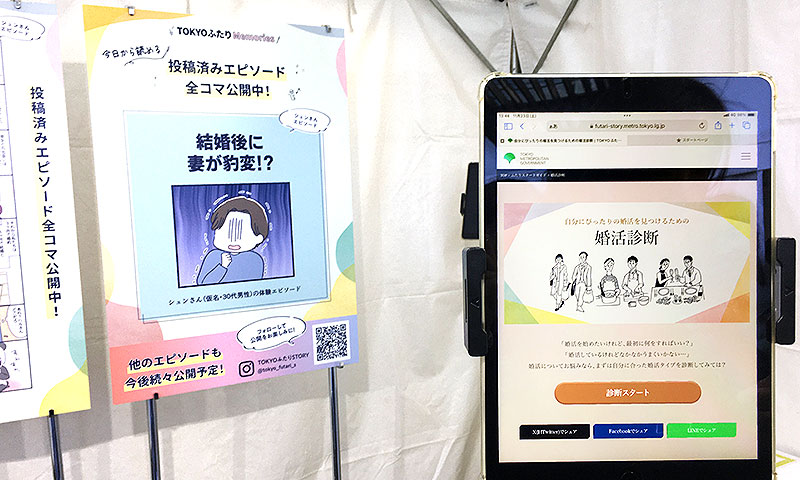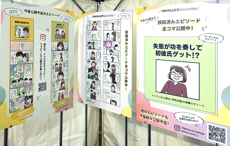 そのほか、TOKYOふたり Memories コーナーでは、「TOKYOふたりMemories」で選定されたマンガ展や、応募されたエピソード・思い出ソングも紹介。公式サイトでも公開されているから、今後の東京都「TOKYO結婚おうえんフェスタ」などのイベントの開催情報とあわせてチェックしてみて↓↓↓