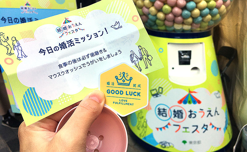 ここでは、婚活を1歩前に進めるためのミッションが書かれたカードと婚活成就ステッカーがゲットできて、「今日から婚活をスタート!」という前向きな気持ちにしてくれる。
