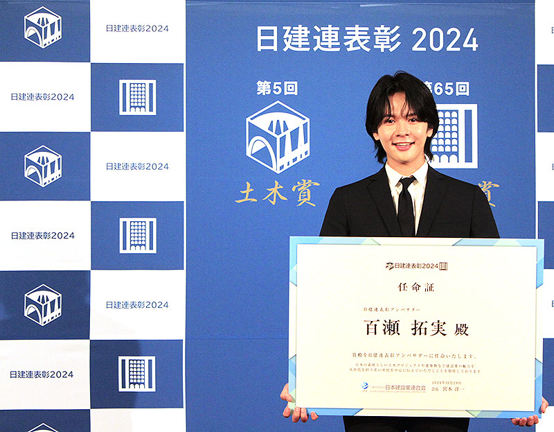 日本建設業連合会(日建連)は11月29日、The Okura Tokyo(オークラ東京)で「日建連表彰2024」表彰式・祝賀会を開催し、日建連表彰アンバサダー百瀬拓実がサプライズ登壇。