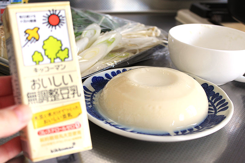 豆乳をゼラチンで固めた豆乳コラーゲンドームを、鍋に豆乳!投入!