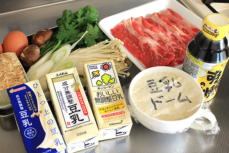 藤橋ひとみ豆乳マイスター考案「豆乳コラーゲンドームすき焼き鍋」は、人や地域でそれぞれが好きな味や具でつくる「すき焼き」に、「豆乳コラーゲンドーム」なるサプライズを加えるだけ。