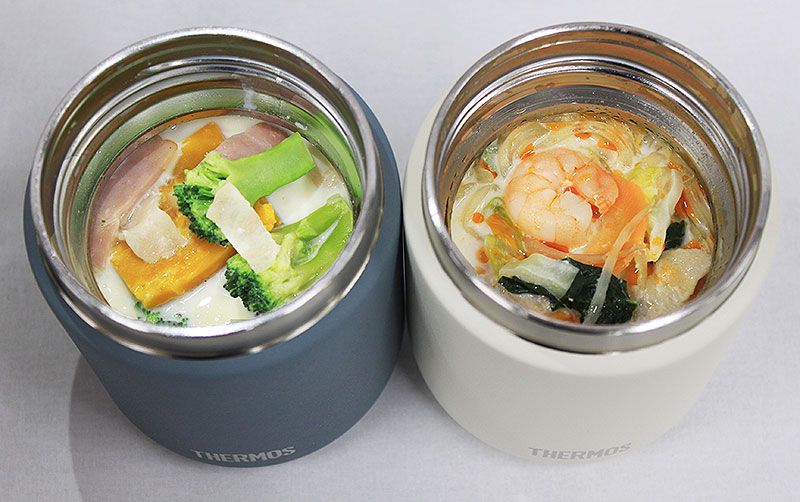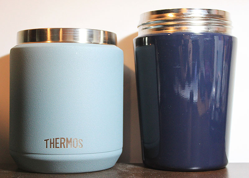 左がサーモス「真空断熱スープジャー」、右が他社製。