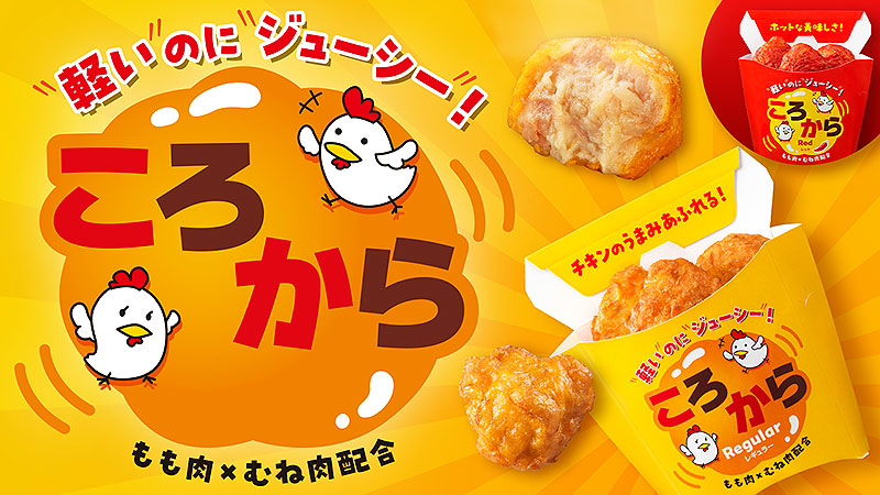 「鶏むね肉ミンチと鶏もも肉ダイスをミックスしたハイブリッド構造からなる「ころから」は、しっとりとしたジューシーな味わいでありながら、しっかりとした「肉感」を出すことで、ひと口ごとの満足感を高めつつも、薄衣で軽い食感を実現しました。