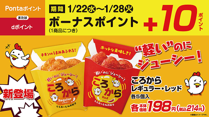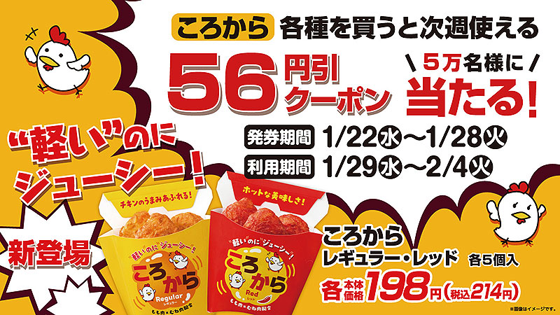 ―――そんな ローソンストア100 に初登場した「ころから」(レギュラー/レッド 5個入り 214円)は、いまこんなお得情報も↓↓↓